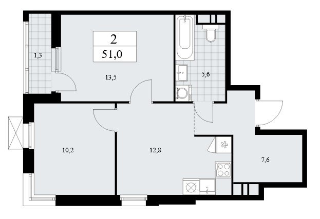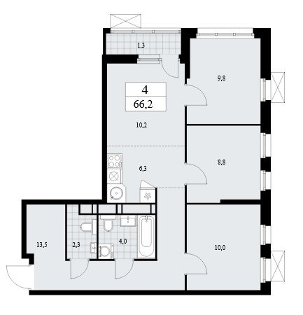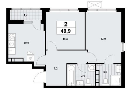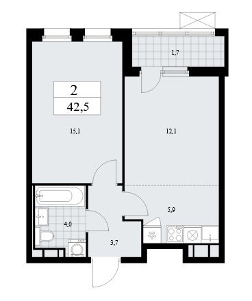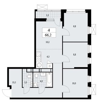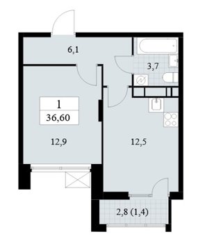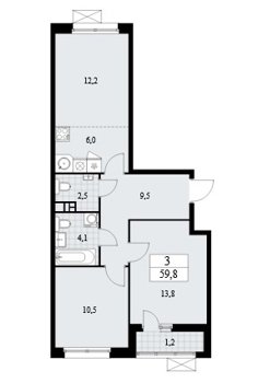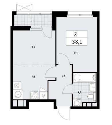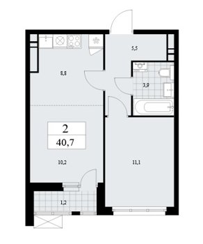 Площадь от 35.8 м2