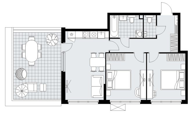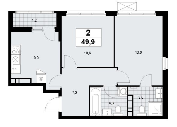 на выбор: с лоджией (балконом), отделкой, террасой, мастер-спальней