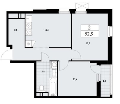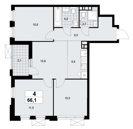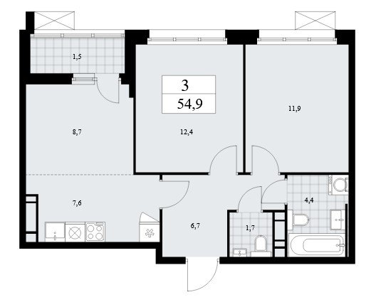 Площадь от 54.9 м2