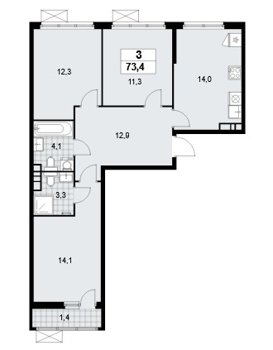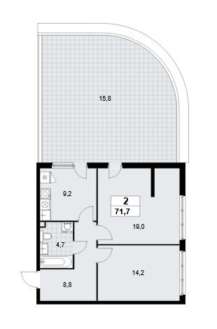 Площадь от 71.9 м2