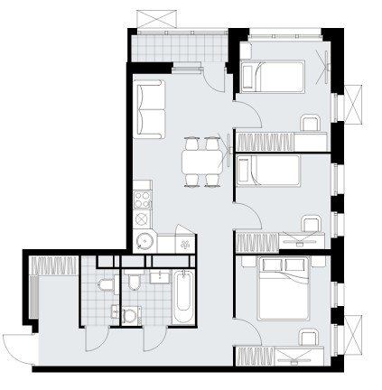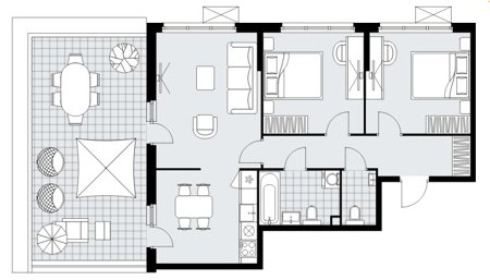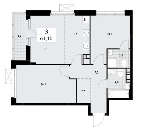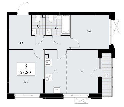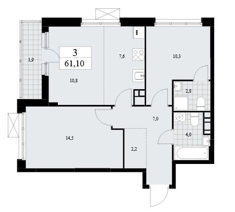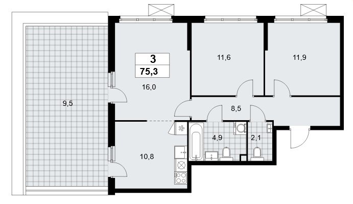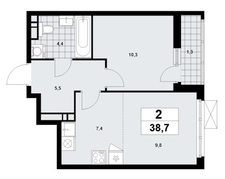 на выбор: с лоджией (балконом), отделкой, террасой