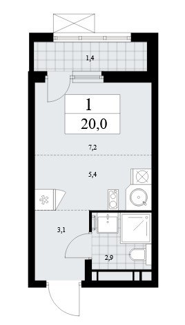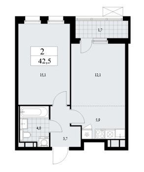 Площадь от 29.7 м2