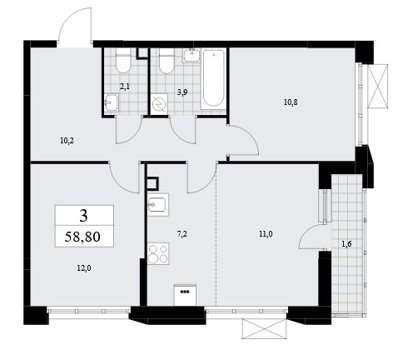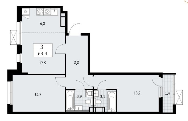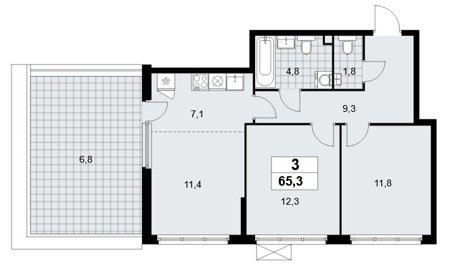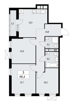 Площадь от 68.4 м2