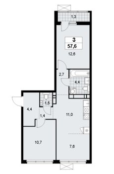 Площадь от 45.6 м2